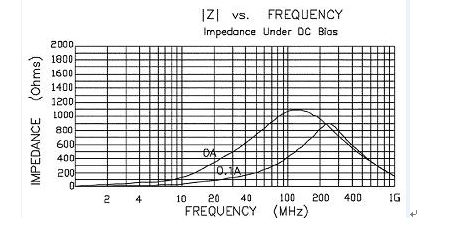 通过这一曲线,选择在希望衰减噪声的频率范围内具有最大阻抗而在低频和直流下信号衰减尽量小的磁珠型号。